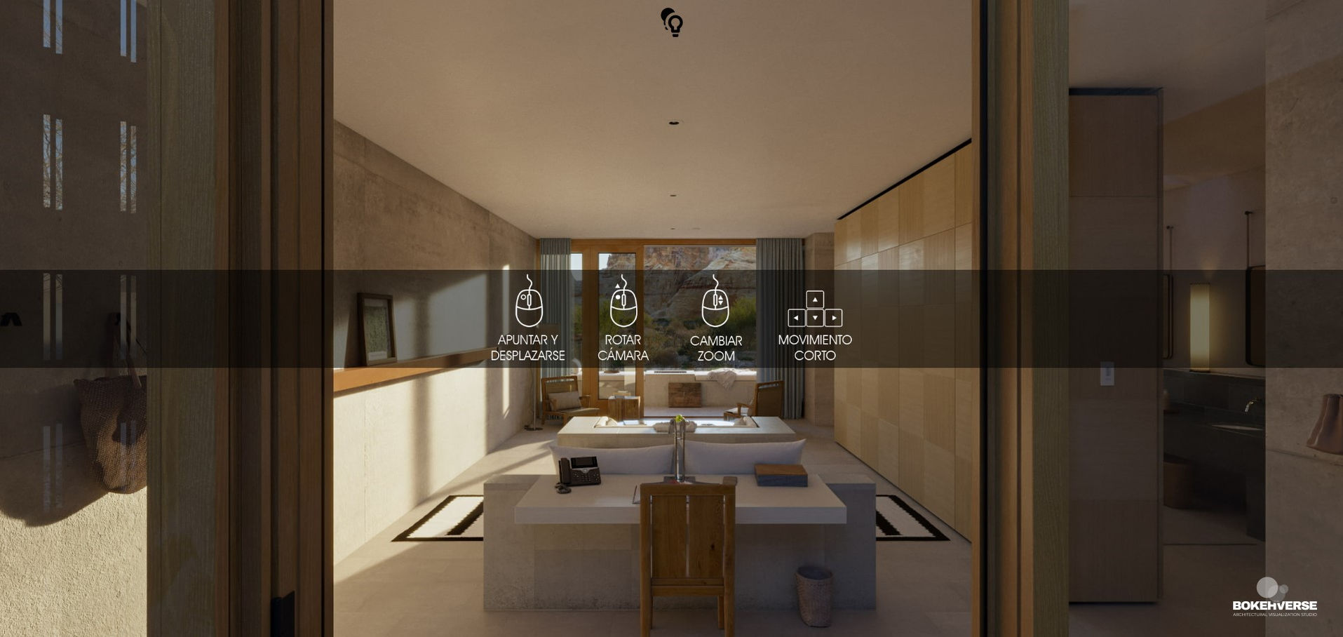 The suites are not just a place to rest, but a luxury retreat designed to connect with the surroundings. Each suite blends minimalist elegance with exquisite comfort. We’ve taken this experience to a new level with our renders. But we didn’t stop there: we’ve developed an immersive virtual experience that allows you to explore the suites as if you were actually there. You can move freely through the space and adjust the lighting to your preference, offering a level of realism that goes beyond traditional renders and brings you closer to the essence of Amangiri.